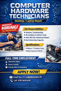 Send your resume to: cv@jobmasters.lk contact Us – 070 362 9629 #jobs #jobsinsrilanka #topjobs #vacanies